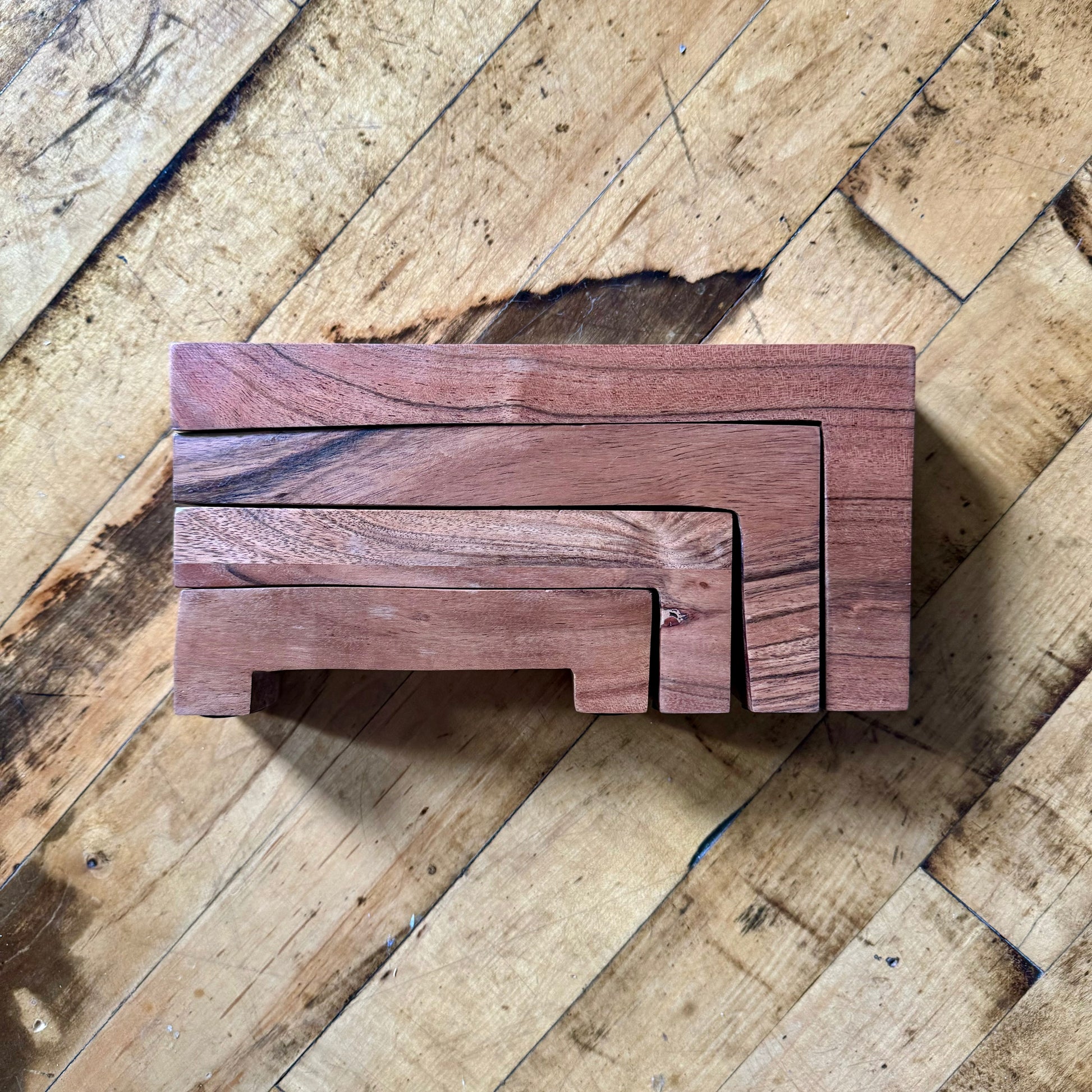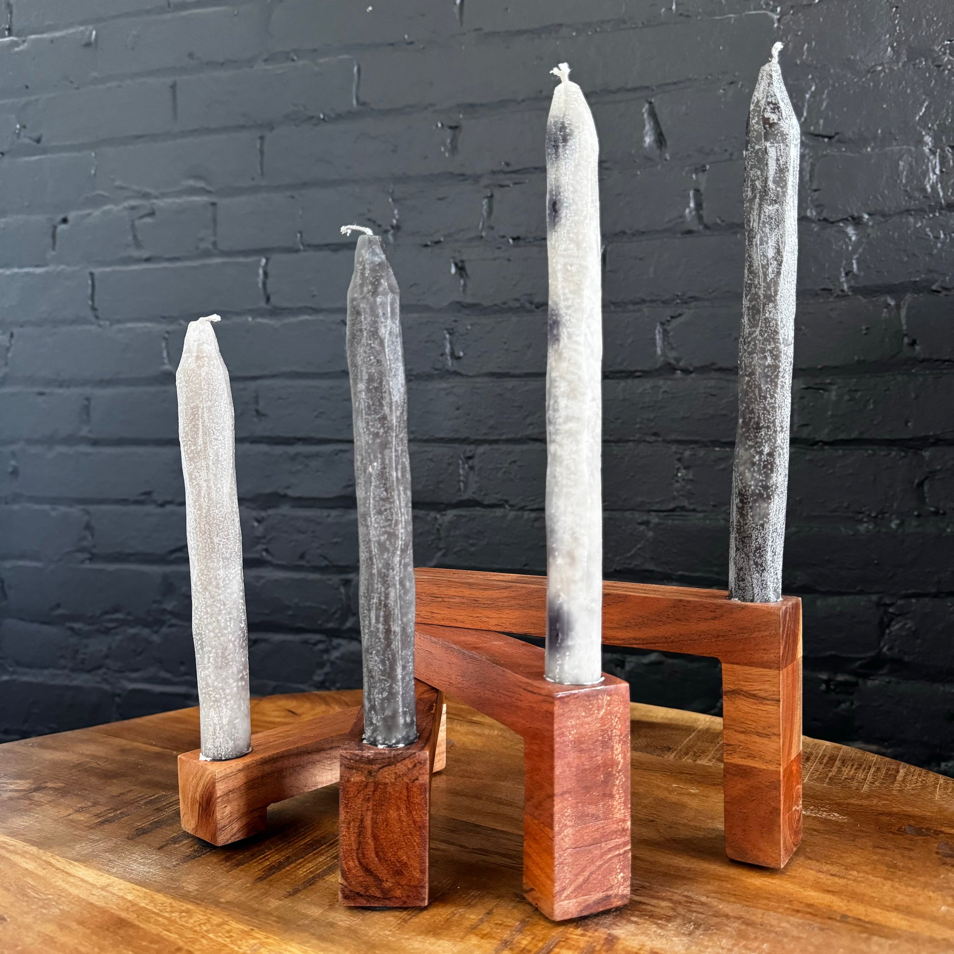 This candelabra is warm, dimensional, and practical. Crafted from acacia wood, it holds four tapers at varying heights and can be folded flat when it’s not in use.