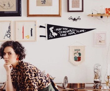 Whatever lights your inner fire is a precious thing, and it helps to make the world a brighter place. Don’t ever let life dim your spark—remind yourself of its importance with this black and white pennant. Cut-and-sewn wool felt and screen-printed design.